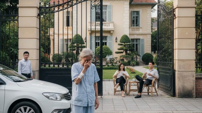 Chiều hôm ấy, hành lang bệnh viện vắng đến lạnh người. Bà Thìn, 68 tuổi, bấm gọi điện cho con trai—Lâm—đến cuộc thứ mười mà vẫn chỉ nghe tiếng tút dài vô cảm. Bà vừa khâu xong hơn mười mũi ở cánh tay sau cú ngã cầu thang, bác sĩ dặn phải có người đưa về. Nhưng Lâm không bắt máy. Vợ nó, Hòa, cũng im lặng như tắt hơi.